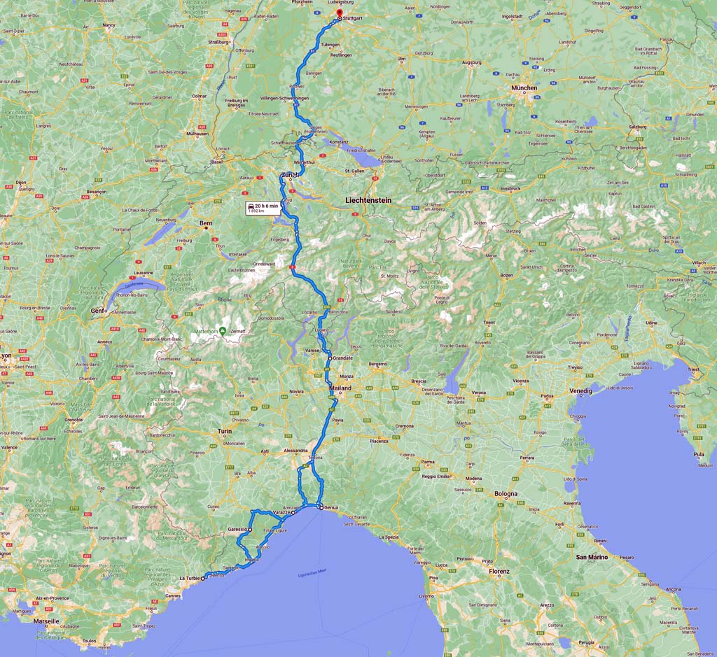 10/2022: 3-Tages-Kurztripp I-F-MC (Genua, Monaco, knapp 1.700 km, Rennrad dabei).