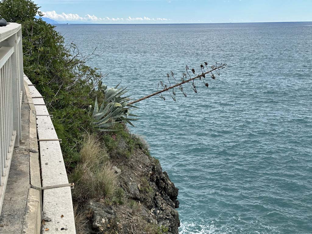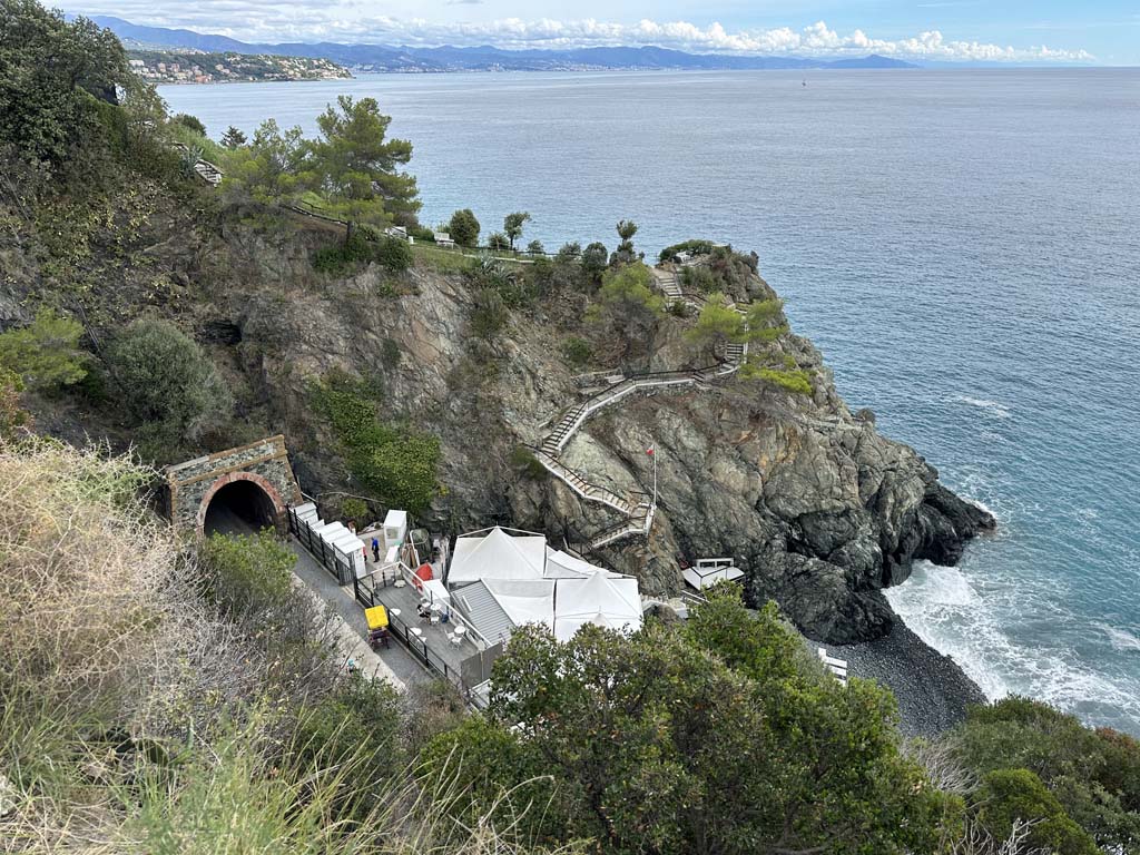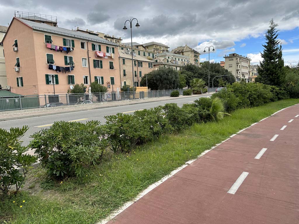 Varazze -> Genua. Hübsch auch, wenn man sich in den Bergen abquält, und 50m tiefer einen perfekten Fahrradweg SIEHT, der auf einer ehemaligen Bahnlinie verläuft ... :-(
