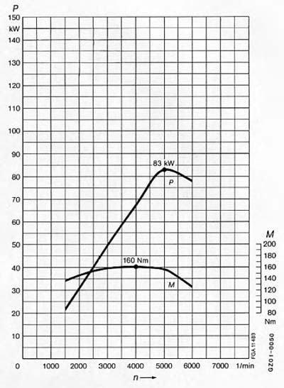 ![]() Leistungs-/Drehmomentverlauf M102E20KAT im 200 GE (C) 1990 Mercedes-Benz |