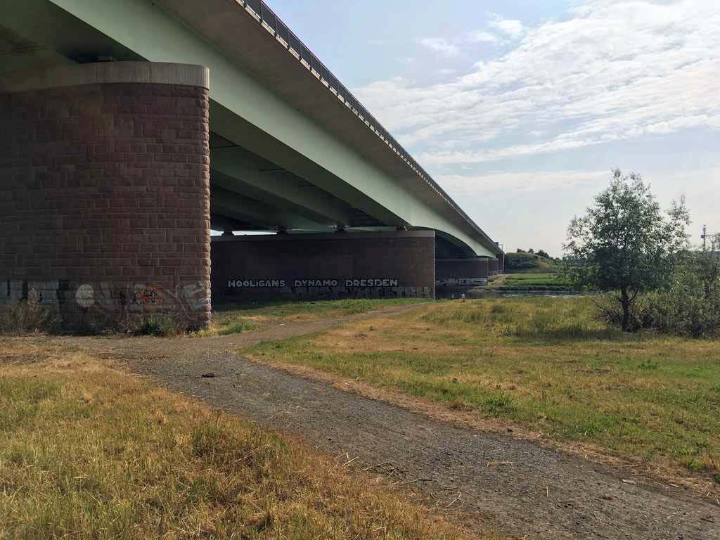 Übernachtungsplätzchen vor den Toren Dresdens und anschliessende Fahrrad-Fahrt hinein - immer an der Elbe entlang.