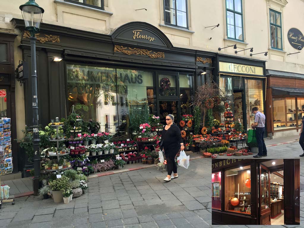 Nette Läden in der Wiener Innenstadt. Rechts Teehandlung Schönbichler.