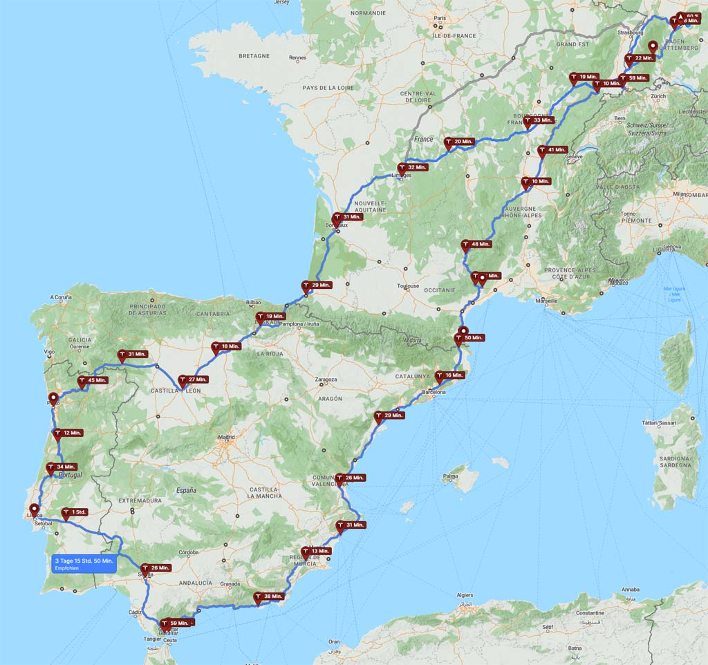 Autobahn) von Portugal nach Spanien -> Sevilla.
