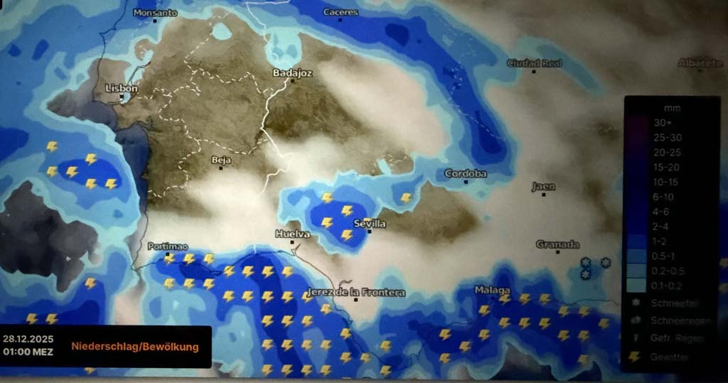 Malaga. Die abendlichen 14° Differenz zur Heimat