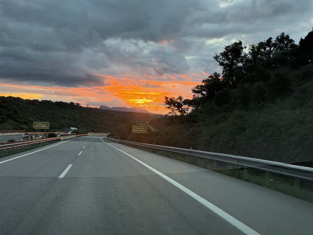 La Jonquera. Kurzer Zwischenstopp am relativ neuen (2024) SC dort, dann weiter via mautfreien Strassen Richtung Frankreich.
