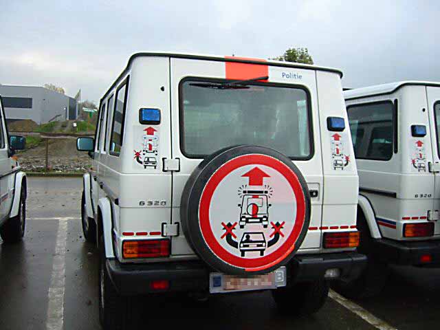 in Teil-Panzerung B4 oder B6 (Frontscheibe) der belgischen Polizei.